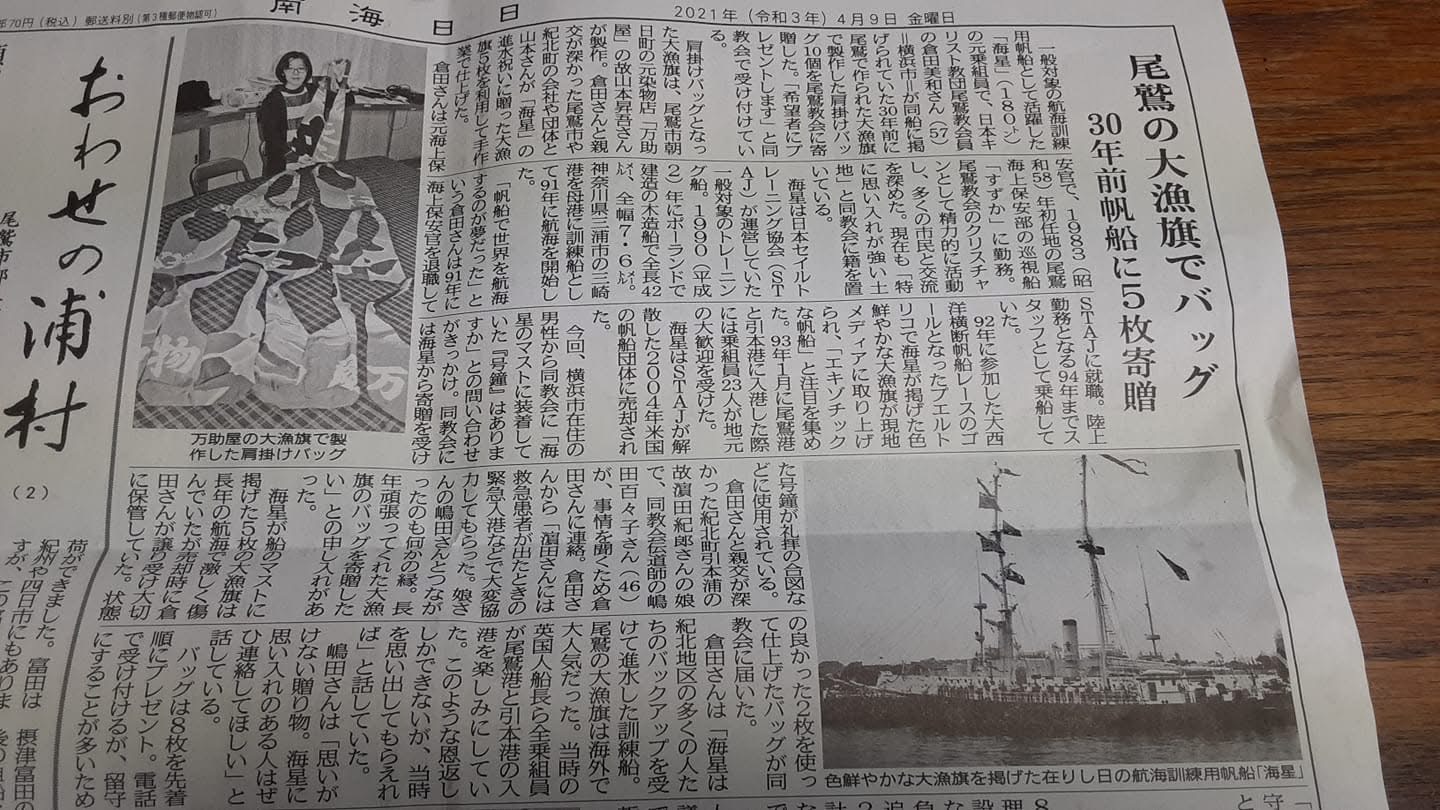 【新聞切り抜き有】尾鷲の大漁旗でバッグ